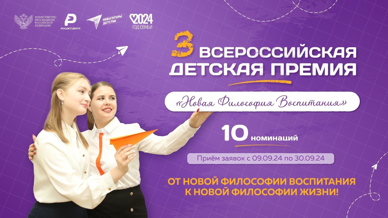Стартовал приём заявок на III Всероссийскую детскую премию «Новая философия воспитания»
